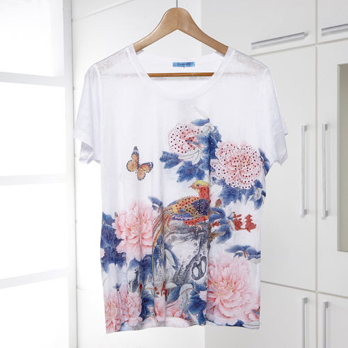 • lingling中大尺碼 貼鑽皺感麻紗鬆緊下擺短袖上衣(甜美粉)A2260-02 (適穿胸圍38以內)
